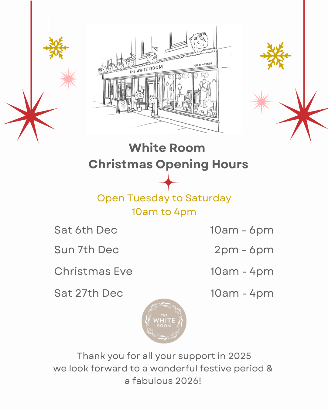 We love Christmas at The White Room — it’s a time for us to truly shine as an independent boutique. Each year, we pour our hearts into curating a beautiful collection, bringing you unique pieces that spark joy, warmth, and love throughout the festive season.